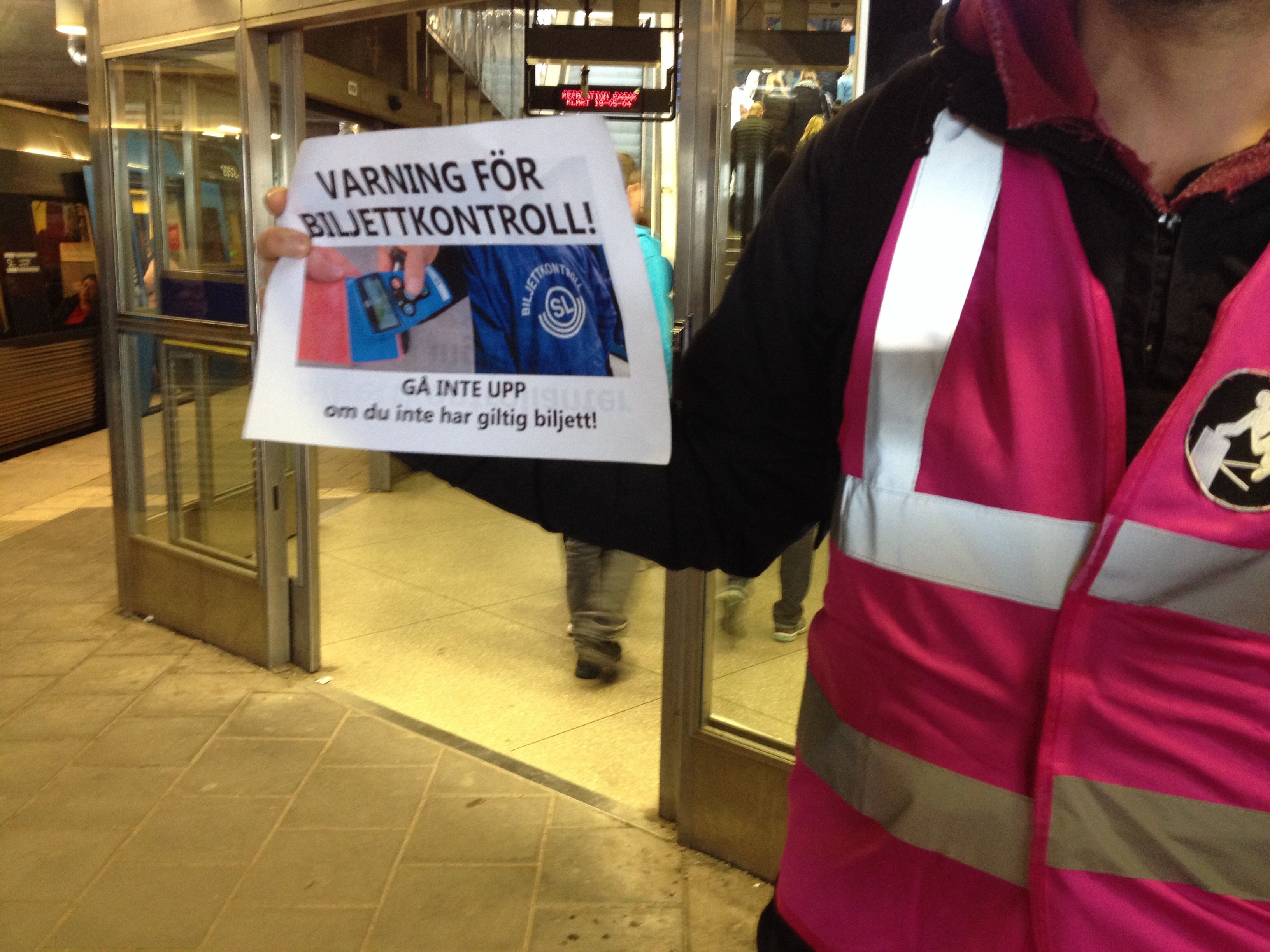 Idén var enkel: att kombinera biljettstrejken och propagerandet för nolltaxa med varningsaktioner där resenärer varnades för biljettkontrollanterna. På Facebook finns grupper där det rapporteras var kontrollanter befinner sig, så det är lätt att ta sig till rätt ställe. Men hur biljettkontrollanterna skulle reagera var det ingen som visste.
